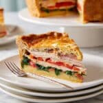 This Italian Brunch Torte is a savory layered pie featuring a flaky crescent roll crust filled with a flavorful combination of ham, salami, provolone cheese, roasted sweet red peppers, sautéed spinach, mushrooms, and a seasoned egg and Parmesan mixture. Baked to golden perfection, this hearty torte is perfect for a festive brunch or special occasion breakfast.