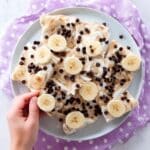 This Kid-Requested Frozen Yogurt Bark with Peanut Butter & Bananas is a cool and delicious treat that’s perfect for warm days or a healthy snack. Creamy yogurt combines with sweet bananas, crunchy peanut butter swirls, and mini chocolate chips for a fun, tasty dessert that kids love.
