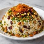 - Garnish and Serve: Transfer the rice mixture to a serving platter and sprinkle with the toasted pine nuts, slivered almonds, and chopped fresh parsley for a beautiful and delicious finish.