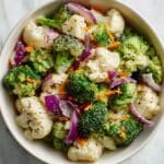 Keywords: Loaded Broccoli Salad, Low-Carb Salad, Broccoli Cauliflower Salad, Bacon Salad, Colby Jack Cheese Salad, Healthy Side Dish