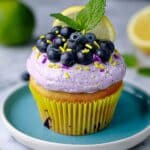 - Blend in Blueberries: Slowly beat in the cooled blueberry reduction into the frosting mixture until fully incorporated. If needed, adjust the consistency by adding more powdered sugar until the frosting reaches your desired thickness for spreading or piping.