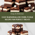 Keywords: marshmallow swirl fudge, chocolate fudge recipe, easy fudge recipe, homemade fudge, no bake fudge, creamy fudge, holiday treats