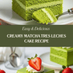 This Matcha Tres Leches Cake combines a light and airy matcha sponge soaked in a luscious matcha-infused milk bath, then topped with smooth matcha whipped cream. Perfectly balancing sweetness and the earthy bitterness of matcha, this cake offers a delightful twist on the classic Latin American tres leches dessert, ideal for special occasions or an indulgent treat.