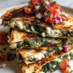 Mediterranean Quesadillas with Spinach, Feta, Mozzarella, and Red Onion offer a quick, easy, and flavorful twist on classic quesadillas. Combining fresh spinach, creamy feta, gooey mozzarella, and tangy red onion, these quesadillas are perfect for a nutritious lunch or dinner. Cooked in a non-stick skillet to golden perfection, they can be customized for vegan and gluten-free diets and paired with a variety of Mediterranean-inspired sides.