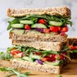 • Use flavored hummus like roasted garlic or red pepper hummus to enhance the sandwich taste.