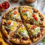 - Finish and Serve: Remove pizza from oven and let cool for 1-2 minutes. Slice and serve with fresh taco toppings like shredded lettuce, diced tomatoes, crushed tortilla chips, sour cream, or jalapeños as desired. Allow diners to customize their slices.