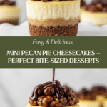 Keywords: mini pecan pie cheesecakes, individual cheesecakes, pecan pie cheesecake bites, holiday desserts, pecan topping cheesecake