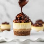 These Mini Pecan Pie Cheesecakes combine the creamy richness of classic cheesecake with the sweet, nutty flavors of pecan pie. Perfectly bite-sized and topped with a luscious pecan caramel, they make an impressive dessert for any occasion.