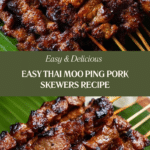 Moo Ping is a popular Thai street food featuring tender, marinated pork skewers grilled to perfection. The pork is soaked in a flavorful mixture of coconut milk, garlic, soy sauces, and palm sugar, resulting in juicy and aromatic bites with a slight caramelized char. Perfectly paired with sticky rice, these Thai pork skewers offer an authentic taste of Thailand in under 30 minutes of active cooking time.