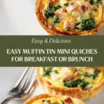 Keywords: mini quiche, muffin tin quiche, breakfast quiche, savory muffin, ham and cheese quiche, spinach quiche, brunch recipes