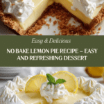 Enjoy a refreshingly tangy and creamy No Bake Lemon Pie that’s perfect for any occasion. This easy-to-make dessert features a buttery graham cracker crust and a luscious lemon cream filling made with cream cheese, fresh lemon juice, and whipped cream. Chill it for a few hours and garnish with fresh lemon slices and mint for a beautiful, crowd-pleasing treat.