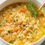 Keywords: orzo lemon soup, chickpea soup, vegetarian soup, Mediterranean soup, easy soup recipe, healthy soup, lemon chickpea soup