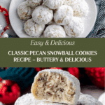 Delightfully buttery and nutty, Pecan Snowball Cookies are delicate, melt-in-your-mouth treats coated in powdered sugar. These classic holiday cookies combine finely chopped pecans with a rich dough flavored with vanilla and almond extracts, baked to tender perfection and dusted generously with powdered sugar for a snowy finish.