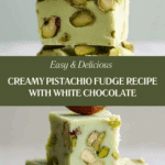 Keywords: pistachio fudge, white chocolate fudge, instant pudding fudge, easy fudge recipe, no bake fudge, holiday dessert, microwave fudge