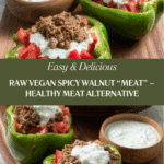 This Raw Vegan Spicy Walnut “Meat” is a delicious, savory, and spicy plant-based alternative to ground meat. Made from whole food ingredients like soaked walnuts, sun-dried tomatoes, spices, and lemon juice, it offers a healthy, unprocessed option perfect for raw food diets or anyone looking to enjoy a flavorful meatless dish. It’s versatile enough for tacos, wraps, stuffed peppers, or salads, and requires no cooking – just a quick blend in a food processor to create a satisfying, crumbly texture. This recipe is ideal for transitioning to a plant-based lifestyle and pleases both vegans and meat-eaters alike.
