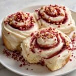 Keywords: Red Velvet Cinnamon Rolls, Cinnamon Rolls, Red Velvet Dessert, Breakfast Rolls, Cream Cheese Frosting