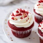 These classic Red Velvet Cupcakes are soft, moist, and perfectly tender with a subtle cocoa flavor and vibrant red color. Topped with a smooth and creamy cream cheese frosting, they make a delightful treat for any occasion.