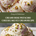 Indulge in the luxurious and aromatic Rose Pistachio Cheesecake Ice Cream, a delightful frozen treat blending creamy cheesecake flavors with fragrant rose water and crunchy pistachios. Perfect for warm days or as an elegant dessert, this ice cream combines smooth cream cheese, floral hints, and nutty texture, all made effortlessly with an ice cream maker.