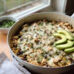 This Salsa Verde Chicken & Rice Skillet is a flavorful, one-pan meal featuring tender shredded chicken, zesty salsa verde, and a medley of spices combined with black beans, corn, and creamy Monterey Jack cheese. Ready in just 30 minutes, this comforting dish is perfect for an easy weeknight dinner that brings vibrant Mexican-inspired flavors to your table.