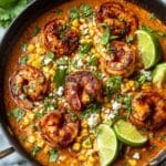 This Shrimp and Creamed Corn recipe is a quick and flavorful one-pan meal perfect for busy weeknights. Juicy, chili-spiced shrimp are sautéed and then combined with a rich and creamy smoked paprika-infused creamed corn sauce topped with tangy crumbled feta and fresh lime juice. Ready in just 30 minutes, this dish combines the sweetness of corn with the savory depth of shrimp in a deliciously creamy skillet dinner.