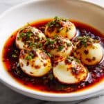 This Spicy Asian Chili Oil Eggs recipe offers a delightful combination of soft-boiled eggs with a jammy yolk and a flavorful, aromatic sauce made from chili oil, soy sauce, and fresh herbs. Perfect as an appetizer or side dish, these eggs are quick to prepare and packed with spicy, savory, and slightly sweet notes for an irresistible snack or meal enhancer.