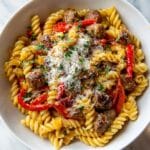 This Spicy Sausage & Roasted Pepper Pasta is a flavorful and comforting dish that’s perfect for a quick weeknight meal. With spicy Italian sausage, sweet roasted peppers, and a touch of heat from red pepper flakes, it’s a crowd-pleaser that comes together in just 30 minutes.