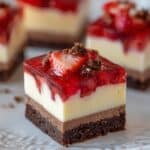 Keywords: strawberry cheesecake bites, mini cheesecake, strawberry dessert, crunchy cheesecake, graham cracker crust, no-bake topping, easy cheesecake recipe
