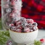 Keywords: sugared cranberries, candied cranberries, holiday garnish, cranberry recipe, simple syrup, vanilla cranberries