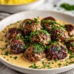 Keywords: Swedish meatballs, creamy gravy, comfort food, ground beef and pork meatballs, home-cooked Swedish recipe