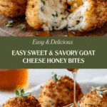 These Sweet & Savory Goat Cheese & Honey Bites are a quick and elegant appetizer perfect for any gathering. Creamy goat cheese paired with sweet honey and crunchy nuts creates a delightful bite that’s sure to impress your guests.