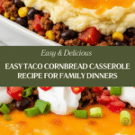 Taco Cornbread Casserole is a comforting, flavorful dish that combines the spicy zest of taco-seasoned beef with the sweet, tender crumb of baked cornbread. Perfect for family dinners, it’s a satisfying one-dish meal that’s easy to make and sure to please everyone at the table.
