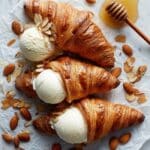 This tasty ice cream croissant combines a creamy honey custard ice cream with crunchy waffle cookie pieces, all sandwiched inside a warm, buttery pan-fried croissant. It’s an impressive yet simple dessert perfect for summer cravings or entertaining guests.