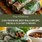 These Thai Basil Beef Rolls are a fresh and flavorful appetizer that combines savory ground beef with fragrant herbs wrapped in delicate rice paper. Perfect for parties or a light meal, they offer a delightful balance of spicy, tangy, and aromatic flavors in every bite.