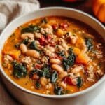 This Turkey Pumpkin White Bean Chili is a cozy and flavorful fall meal that blends lean turkey with creamy pumpkin and hearty beans. Infused with warming spices like cumin, smoked paprika, and cinnamon, it’s both nutritious and satisfying. Perfect for meal prep, weeknight dinners, or holiday gatherings.