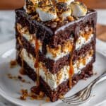 This Ultimate S’mores Layer Cake combines rich chocolate cake layers with fluffy marshmallow cream filling and a crispy graham cracker crunch, all topped with a decadent chocolate ganache and toasted marshmallows for an irresistible dessert reminiscent of classic campfire s’mores.