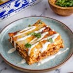 - Serve: Allow the enchiladas to cool for several minutes after baking. Serve warm topped with vegan sour cream and chopped cilantro for a flavorful finishing touch. Enjoy!
