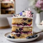 Keywords: Vegan lemon blueberry cake, dairy-free cake, plant-based cake, lemon cake, blueberry cake, vegan dessert, lemon buttercream frosting