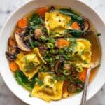Store leftover soup in an airtight container in the refrigerator for up to 3 days. When reheating, heat gently on the stove to avoid overcooking the potstickers and vegetables. It’s best enjoyed fresh but can be frozen without the potstickers for up to 1 month; add fresh potstickers when reheating.