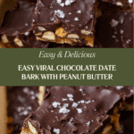 Keywords: chocolate date bark, no bake dessert, healthy chocolate bark, peanut butter chocolate bark, Medjool dates recipe