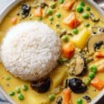 Keywords: white bean stew, mushroom stew, vegetarian stew, plant-based stew, tempeh recipe, coconut milk stew, baby potatoes stew
