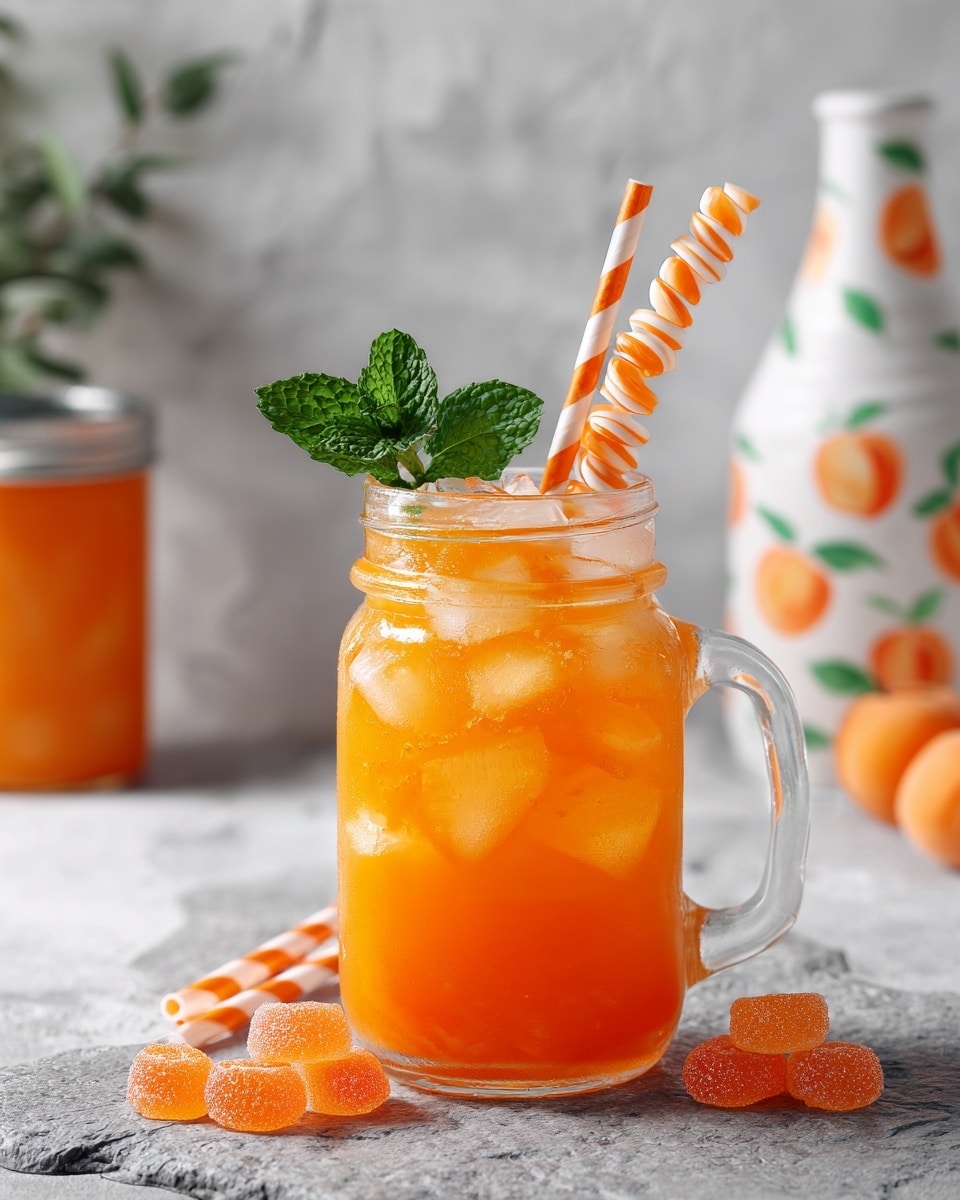 • Peach rings and mint leaves add an elegant garnish but can be omitted if unavailable.