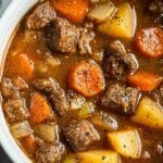 Store leftover stew in an airtight container in the refrigerator for up to 4 days. Reheat gently on the stovetop or in the microwave until warmed through. This stew also freezes well for up to 3 months; thaw overnight in the fridge before reheating.